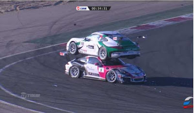 Namun demikian, tak semua insiden kecelakaan yang terjadi dalam arena balap itu menyeramkan. Contohnya seperti insiden yang terjadi dalam turnamen Porsche Carrera Cup di Perancis ini.